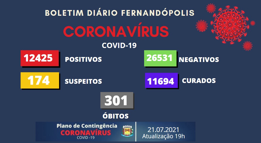 O Boletim Epidemiológico de Fernandópolis desta quarta-feira, 21, traz mais 58 casos positivos para coronavírus. O município chega a 12.425 infectados pela doença.
