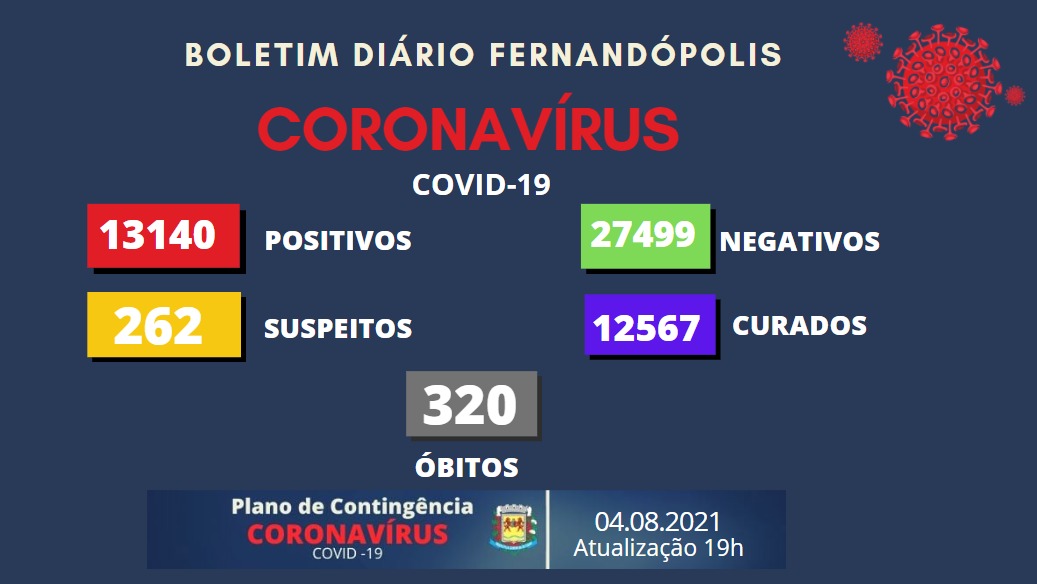 O Boletim Epidemiológico de Fernandópolis desta quarta-feira, 04, traz mais 44 casos positivos para coronavírus. O município chega a 13.140 infectados pela doença.