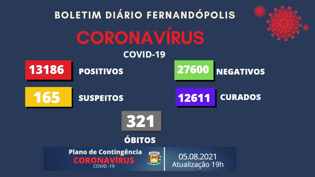 O Boletim Epidemiológico de Fernandópolis desta quinta-feira, 05, traz mais 46 casos positivos para coronavírus. O município chega a 13.186 infectados pela doença.