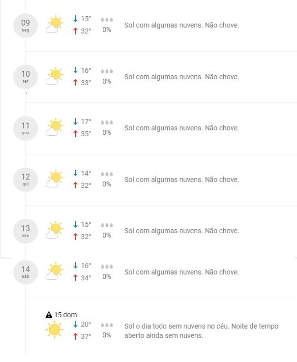 Confira a Previsão para o restante da semana: