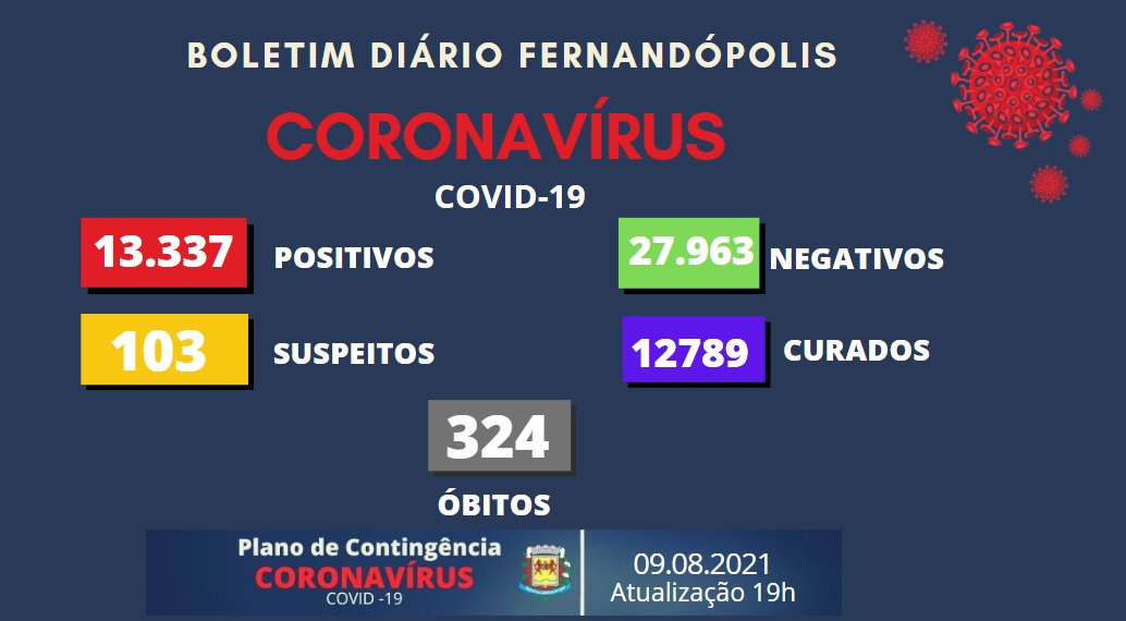 O Boletim Epidemiológico de Fernandópolis desta segunda-feira, 09, traz mais 46 casos positivos para coronavírus. O município chega a 13.337 infectados pela doença.