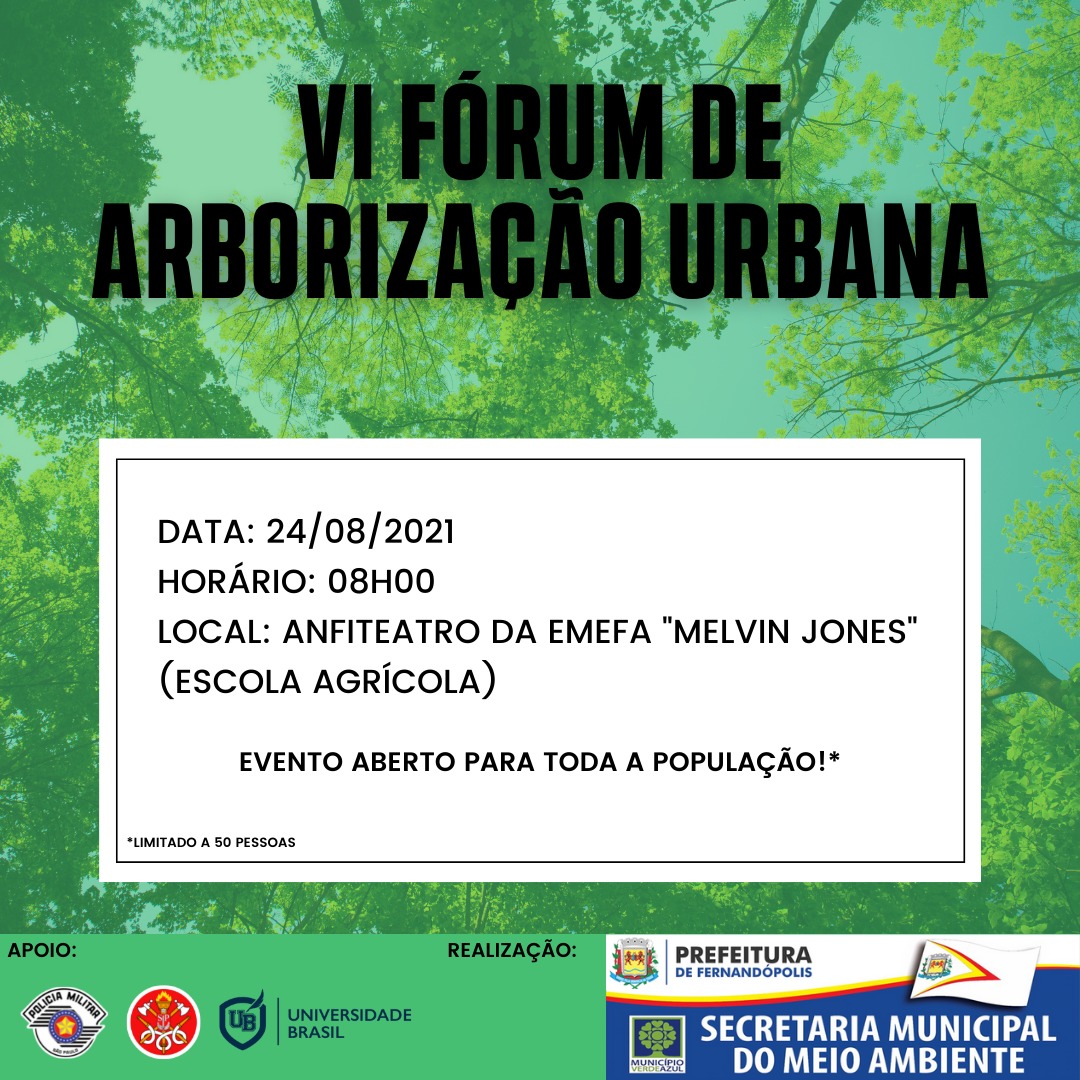A Secretaria Municipal de Meio Ambiente da Prefeitura de Fernandópolis (SMA) realiza no próximo dia 24 de agosto o 6º Fórum de Arborização Urbana.