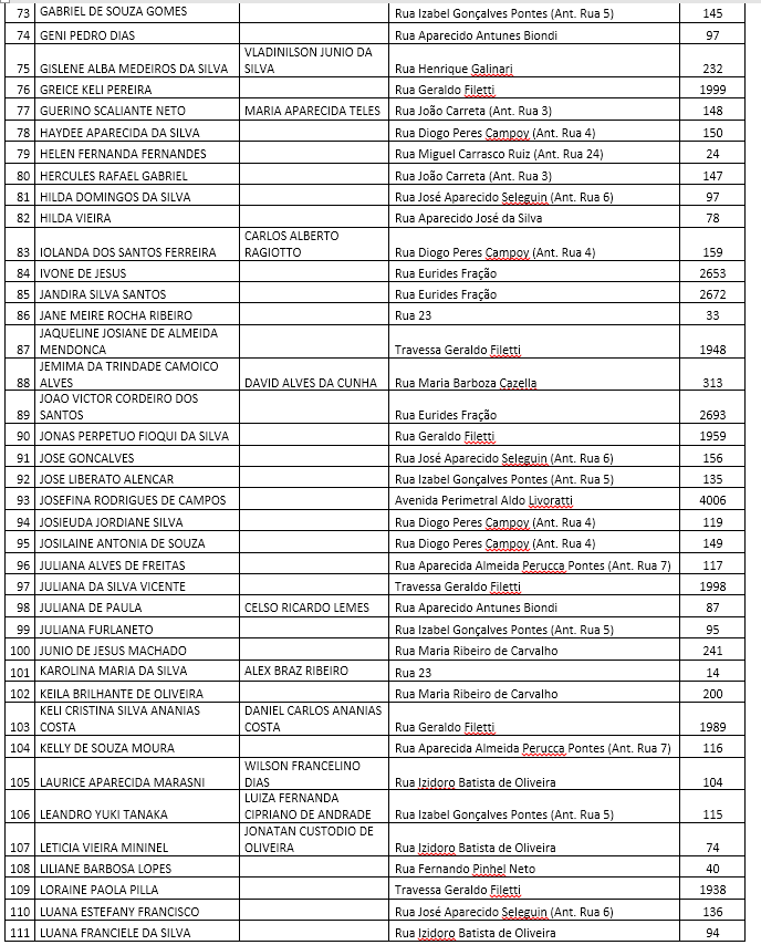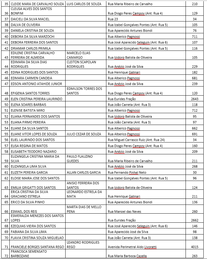 Todo evento foi conduzido pela CDHU - Companhia de Desenvolvimento Habitacional e Urbano. Participaram da solenidade: prefeito André Pessuto, presidente da ALESP, deputado Carlão Pigatari, o gerente regional da CDHU, Osvaldo Carvalho, o presidente da Câmara, Gustavo Pinato e os vereadores - Aparecido Moreira da Silva, Claudenilson Alves de Aráujo, Daniel Trídico Arroio, Everaldo Lisboa da Silva, Janaína Alves, Jeferson Leandro de Paula , João Garcia Filho, João Paulo Cantarella, João Pedro da Silva Siqueira, Júlio César de Oliveria Cebin.
