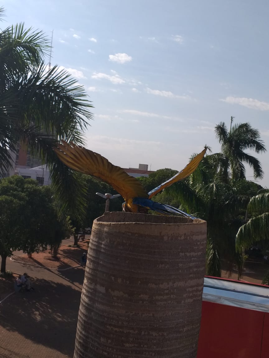Ao verificar ninhos já instalados, equipe de paisagismo constatou araras-canindé (filhotes), ou seja, está acontecendo reprodução nos ninhos construídos pela Prefeitura