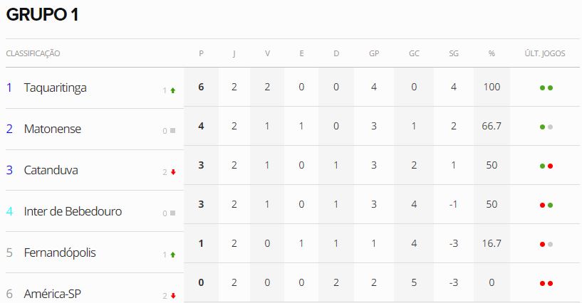 Nas demais partidas válidas pelo Grupo 1, a Inter de Bebedouro venceu o América por 3 a 2, e o Taquaritinga derrotou o Catanduva por 2 a 0 e assumiu a liderança do grupo com seis pontos.