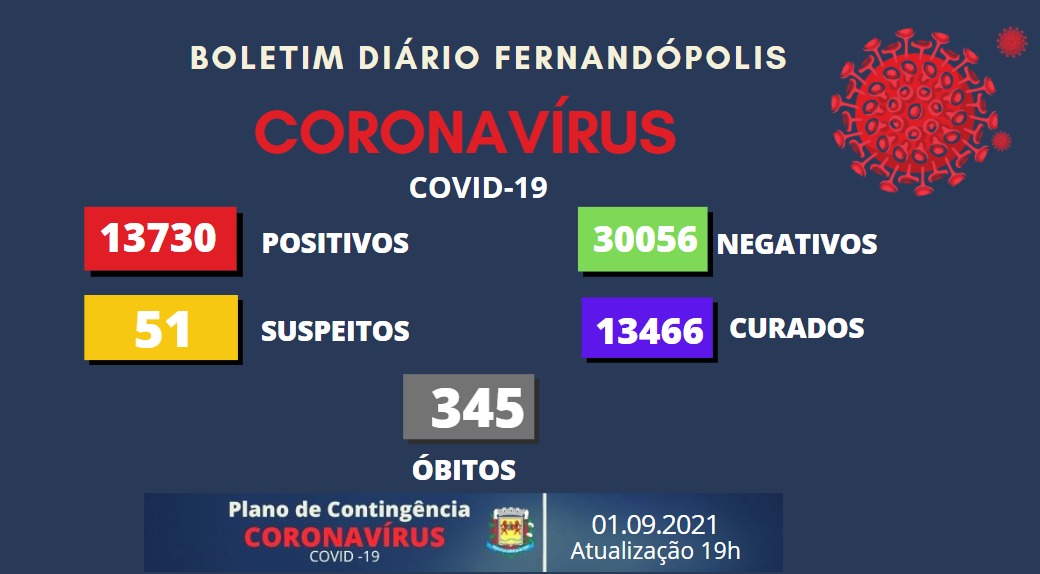 O Boletim Epidemiológico de Fernandópolis desta quarta-feira, 01, traz mais 8 casos positivos para coronavírus. O município chega a 13.730 infectados pela doença.