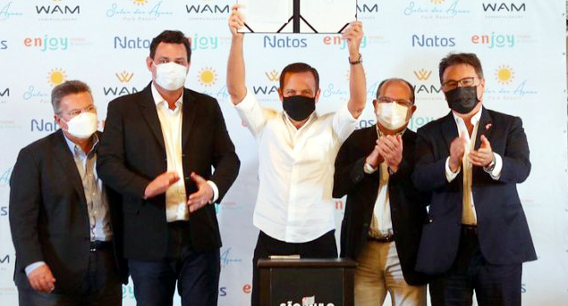 Carlão Pignatari, presidente da Alesp; Geninho Zuliani, deputado federal; João Doria, governador de São Paulo; Fernando Cunha, prefeito de Olímpia e Vinicius Lummertz, secretário de Turismo. Foto: Divulgação