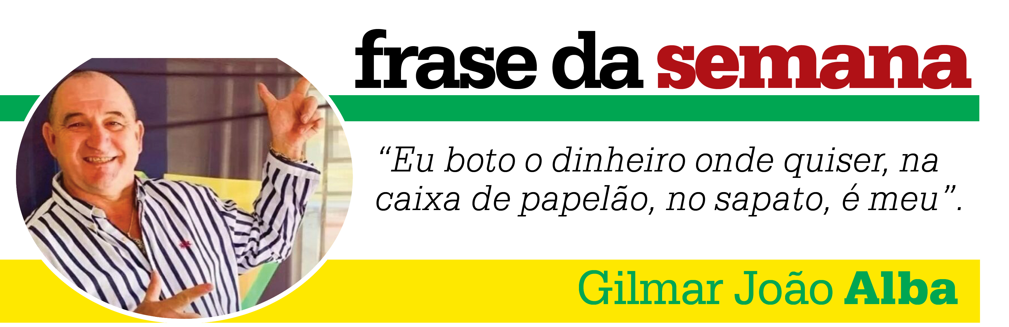Do prefeito de Cerro Grande do Sul, Gilmar João Alba (PSL), afirmando que o dinheiro apreendido enquanto ele tentava embarcar no Aeroporto de Congonhas, era dele e seria usado em "oportunidade de negócios", negando as suspeitas da CPI da Covid de que seria usado para financiar atos antidemocráticos no próximo dia 07.