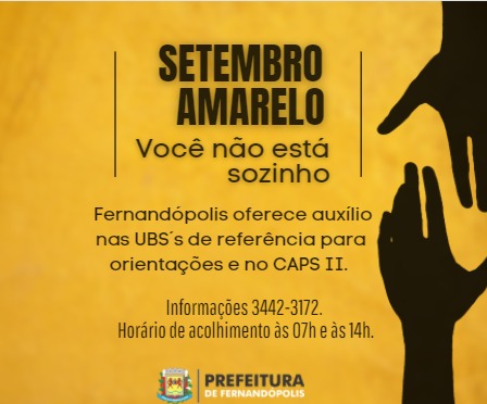Em virtude da importância desse tema, a Secom – Secretaria Municipal de Comunicação da Prefeitura de Fernandópolis inicia nos próximos dias uma campanha junto a Imprensa local. O principal objetivo é dar visibilidade as ações promovidas pelo CAPS, apoiando e incentivando a população a dar mais atenção e importância para o tema.