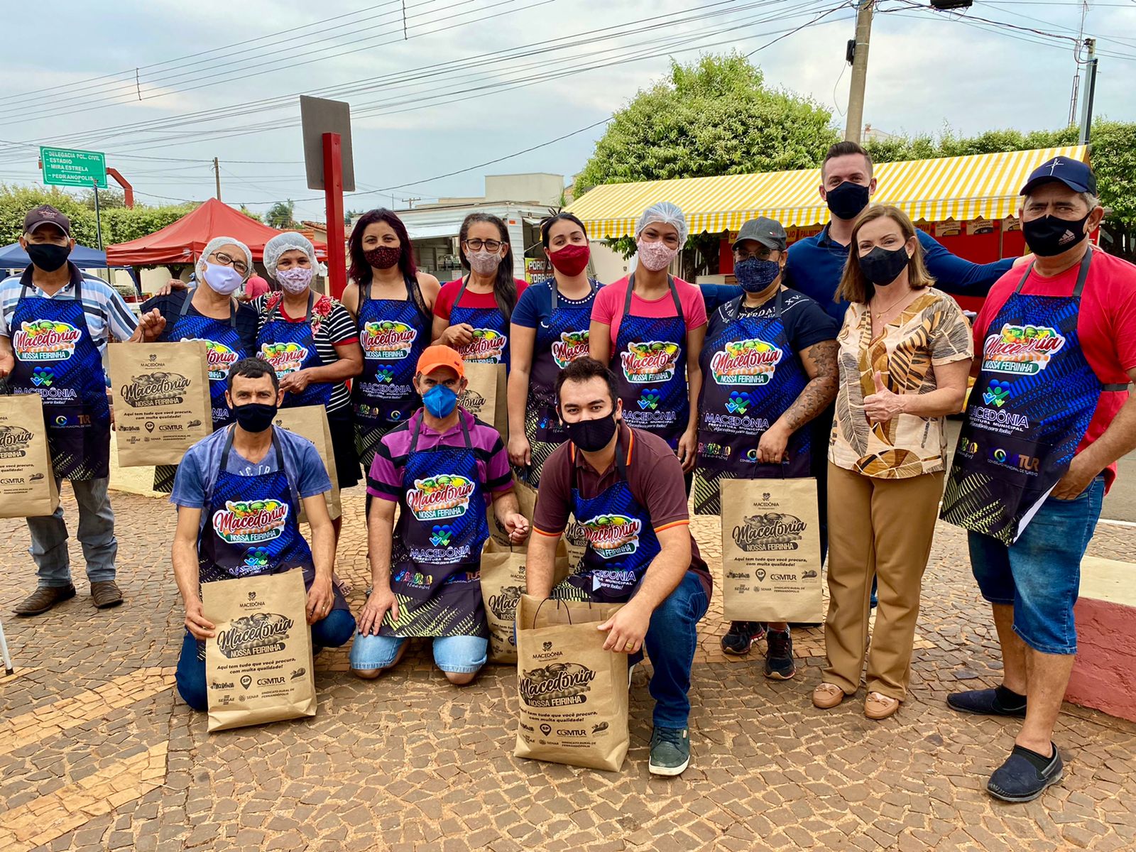 A prefeitura municipal de Macedônia através do departamento de turismo e cultura realizou nesta quinta-feira, 09, a entrega de “Kit” aos feirantes, composto por avental, manual de redes sociais (Instagram e facebook), material gráfico de orientação de como vender mais e melhor, abertura da MEI, Revista da região turística Maravilhas do Rio Grande, Roteiro Gastronômico e também plaquinhas de preços.