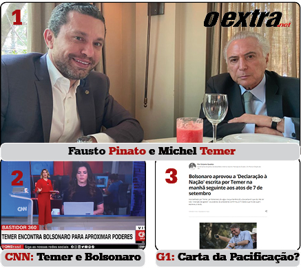 1 - Quarta-feira, 08 de setembro: após as manifestações de 7 de Setembro e as declarações antidemocráticas do presidente Jair Bolsonaro (sem partido), o deputado federal Fausto Pinato (PP) divulga foto de um almoço com o ex-presidente Michel Temer em São Paulo;