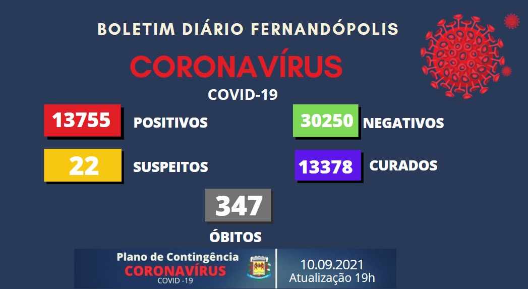 O Boletim Epidemiológico de Fernandópolis desta sexta-feira, 10, traz mais 4 casos positivos para coronavírus. O município chega a 13.755 infectados pela doença.