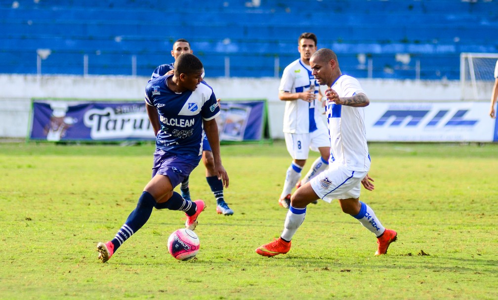 Novo reforço do Votuporanguense, Jeffinho (à esq.) defendeu o Taubaté entre 2018 e 2019 — Foto: Bruno Castilho/EC Taubaté
