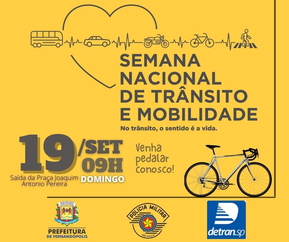 No próximo domingo, 19, a Prefeitura de Fernandópolis, por meio da SEMUTRAN – Secretaria Municipal de Trânsito, juntamente com o DETRAN-SP e Polícia Militar, realizam um passeio ciclístico que vai percorrer várias ruas e avenidas da cidade. A saída será da Praça Joaquim Antônio Pereira (Central), a partir das 9h.