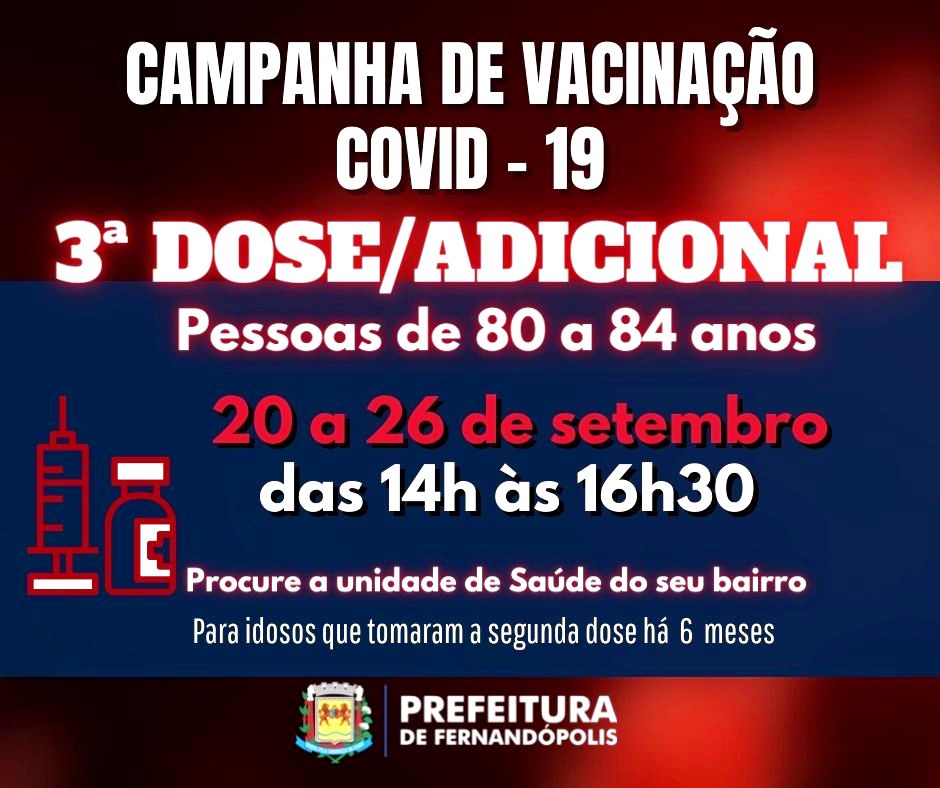 537 pessoas já receberam o “reforço” da 3ª dose; após vacinação de pessoas a partir de 85 anos, novo público alvo, com idade entre 80 e 84 anos, começou a ser imunizado nesta segunda e esta faixa etária segue até dia 26