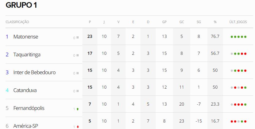 Os três primeiros do grupo, Matonense, Taquaritinga e Inter de Bebedouro, se classificaram para a próxima fase, além do Catanduva, que se classificou como o melhor quarto colocado no geral.