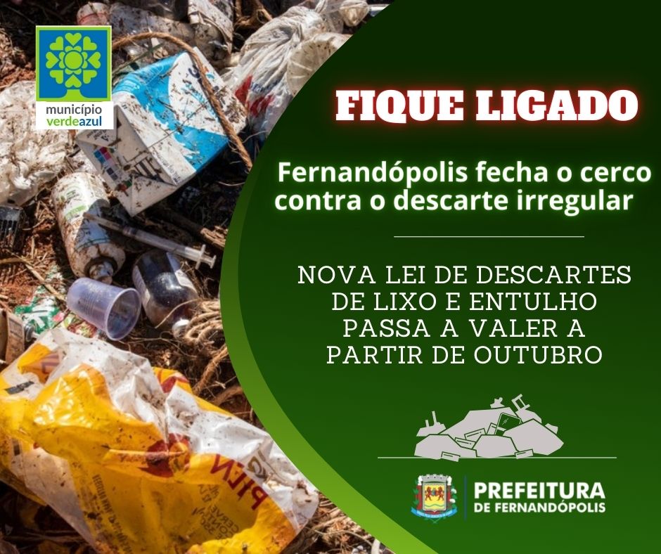 A Secretaria Municipal de Meio Ambiente confirmou que passa a valer a partir de 10 de outubro, a nova Lei Municipal 5.025 de 2.020 que institui a nova política municipal de resíduos sólidos. Com isso, a pessoa jurídica ou física que for flagrada fazendo o descarte irregular em área urbana ou rural terá que pagar, além das multas já previstas no âmbito Federal e Estadual, as novas regras municipais.