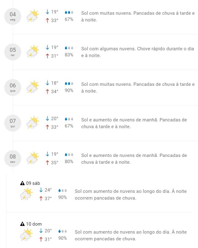 Confira a previsão completa para a semana: