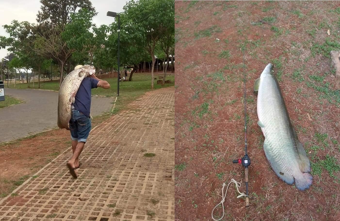 As imagens de um homem carregando um pirarucu "gigante", que foi pescado no Parque da Cultura de Votuporanga, viralizaram na internet no último final de semana.