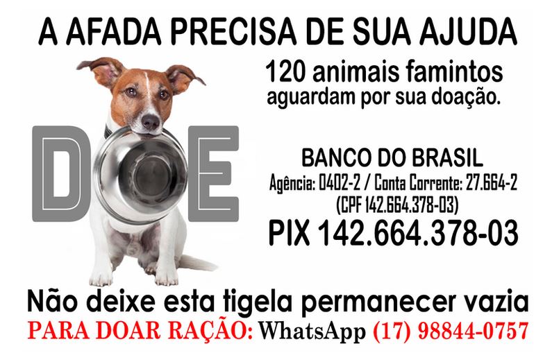 “Sem ração e sem dinheiro no caixa”. Foi assim que a voluntária Simone Protetora, da AFADA – Fernandópolis, definiu em poucas palavras e real e atual situação do abrigo que atualmente acolhe cerca de 120 animais.