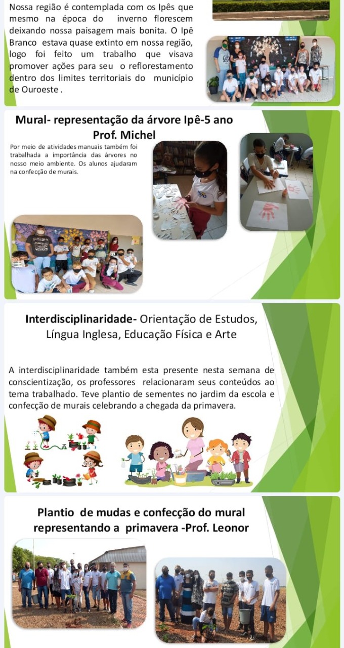 Trata-se de um trabalho sobre reflorestamento, conscientização a respeito da natureza e desenvolvimento sustentável