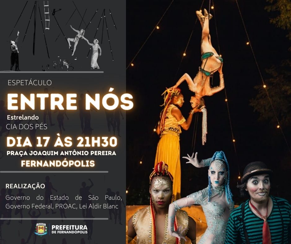 Obras cênicas que desafiam limites físicos e artísticos, promovendo a fusão de linguagens como o teatro, o circo, a dança e a performance aérea. Essa é a atração que o público fernandopolense vai acompanhar hoje, dia 17, no espetáculo ‘Entre Nós’, da Cia dos Pés.