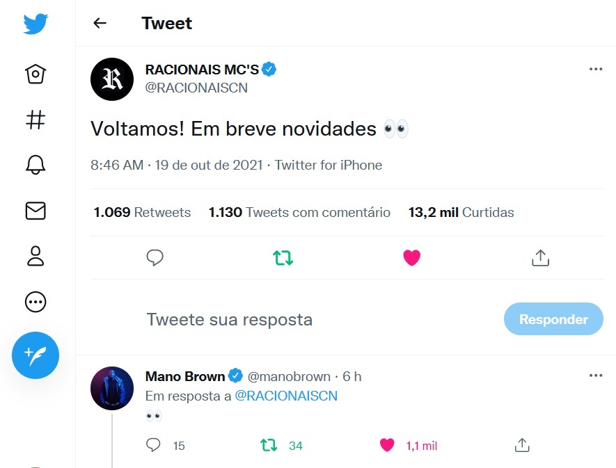Depois de 7 anos do último LP lançado, “Quanto Vale o Show?”, de 2014, eles estão de volta. Como registrado no perfil oficial dos Racionais MC’s no Twitter, nesta terça-feira (19), “novidades em breve”.