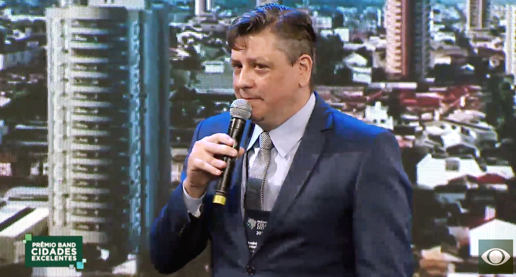 Pessuto discursa durante a premiação na sede paulista da Band. Foto: Divulgação/Secom Fernandópolis