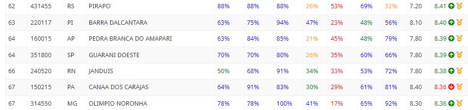 O município da região ainda ficou em 64º lugar entre os 5.570 municípios do Brasil