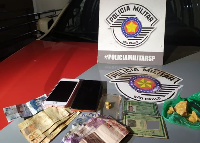 No local, mais drogas foram localizadas. O homem foi preso e a mulher apreendida e ambos foram encaminhados para o Plantão Policial.