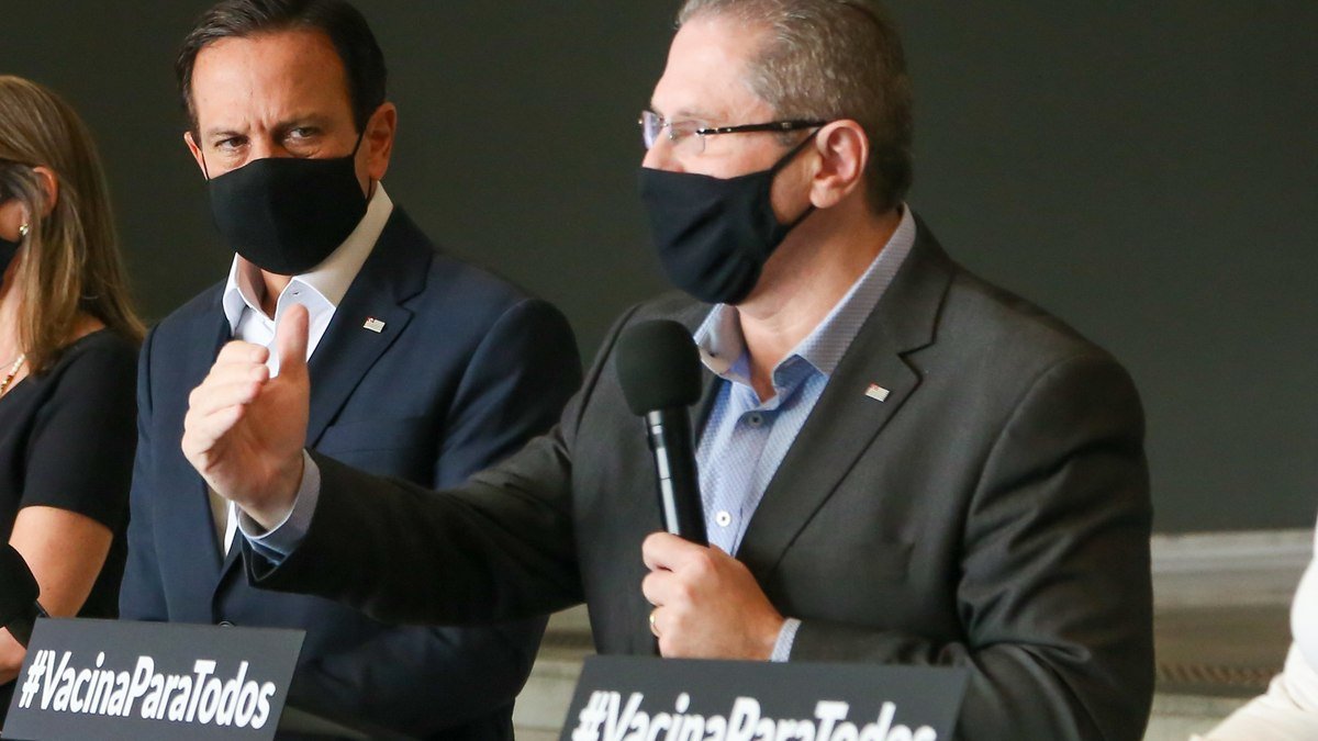 Governador João Doria e secretário de Saúde Jean Gorinchteyn durante anúncio de flexibilização do Plano SP. Foto: Divulgação