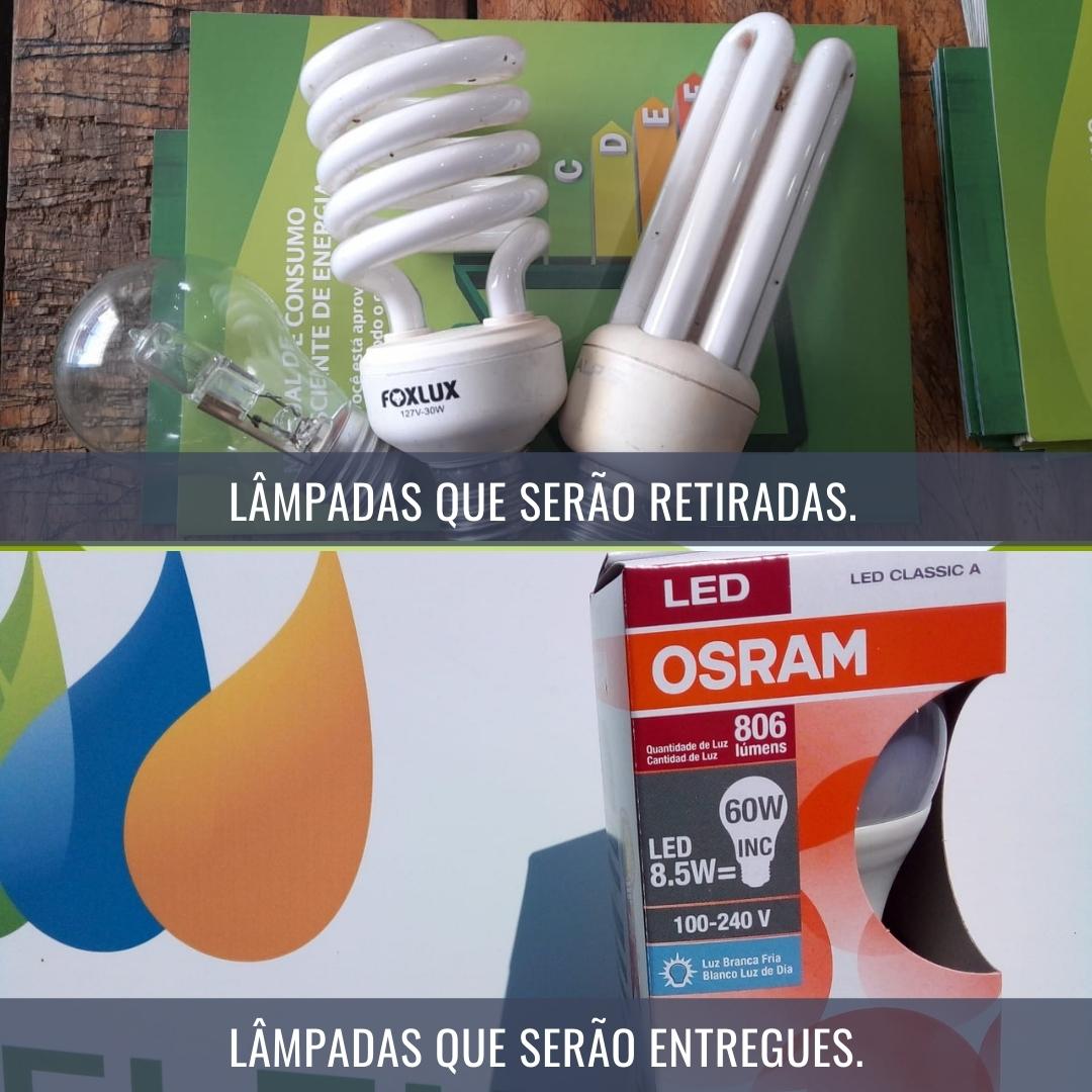O programa é baseado na troca gratuita de lâmpadas halógenas, fluorescentes e incandescentes por lâmpadas LED mais eficientes e 40% mais econômicas. Os munícipes trocam até 5 lâmpadas por medidor, apresentando a conta de luz, RG do titular e as lâmpadas antigas.