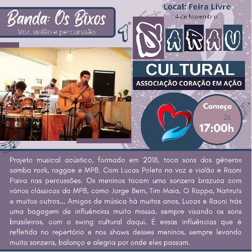 Dentre as atrações teremos o Projeto musical " Os Bixo" no comando de Lucas Poleto e Raoni Martins de Paiva