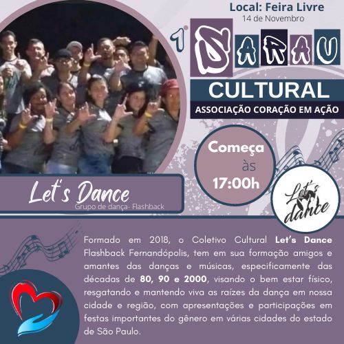 Para a velha guarda teremos o grupo de dança " Let's Dance Flash Back" relembrando as melhores músicas e danças de passinho dos anos 80 e 90.