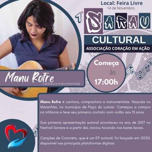 Na MPB teremos a voz melodiosa de Manu Rofre nos apresentando seu álbum autoral.