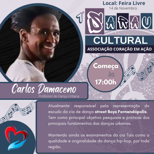 Nas danças urbanas temos o reconhecido dançarino e coreógrafo Carlos Henrique Damaceno no comando do Stret Dance.