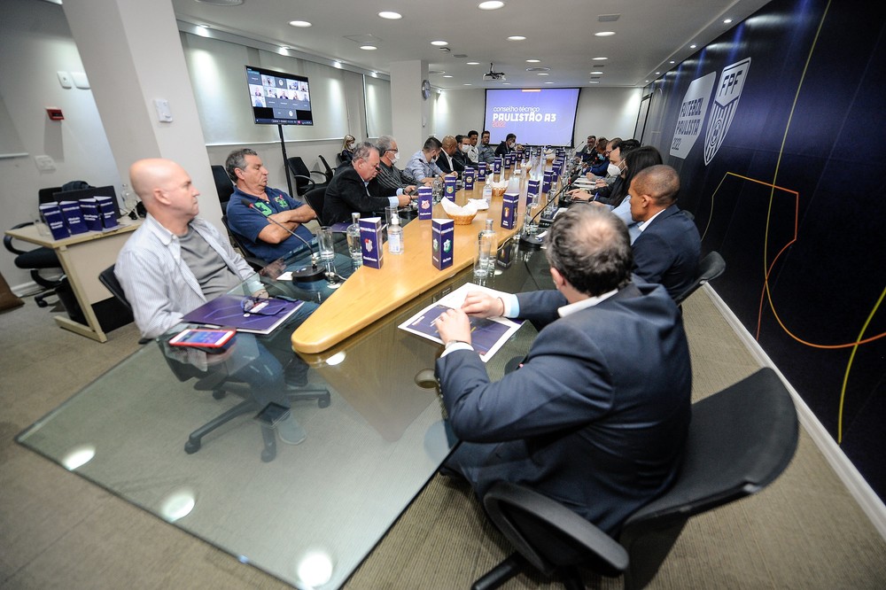 Reunião com dirigentes da Série A3 aconteceu nesta quinta na Federação Paulista de Futebol — Foto: Rodrigo Corsi/Paulistão