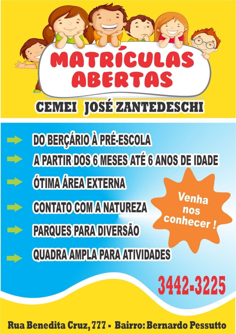 Lembrando que a escola está com vagas abertas, matrículas podem ser feitas desde o berçário até a pré-escola, para crianças de 6 meses até 6 anos de idade.
