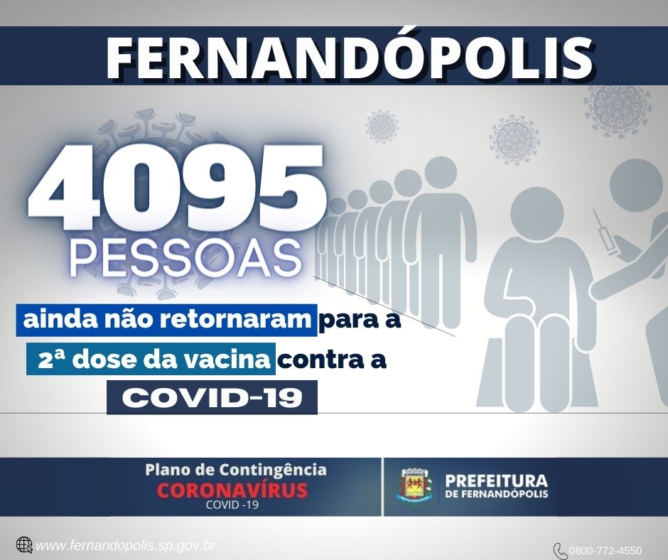 Mais de 4 mil pessoas não retornaram para tomar a 2ª dose contra a Covid em Fernandópolis