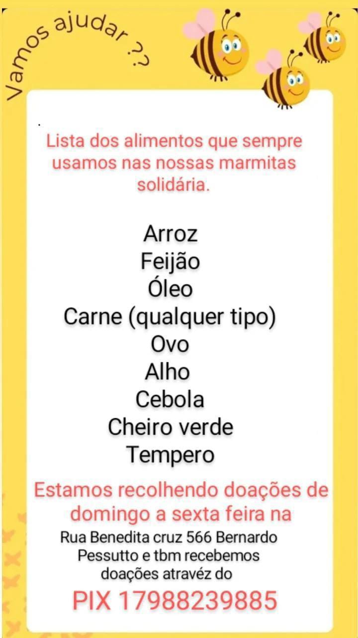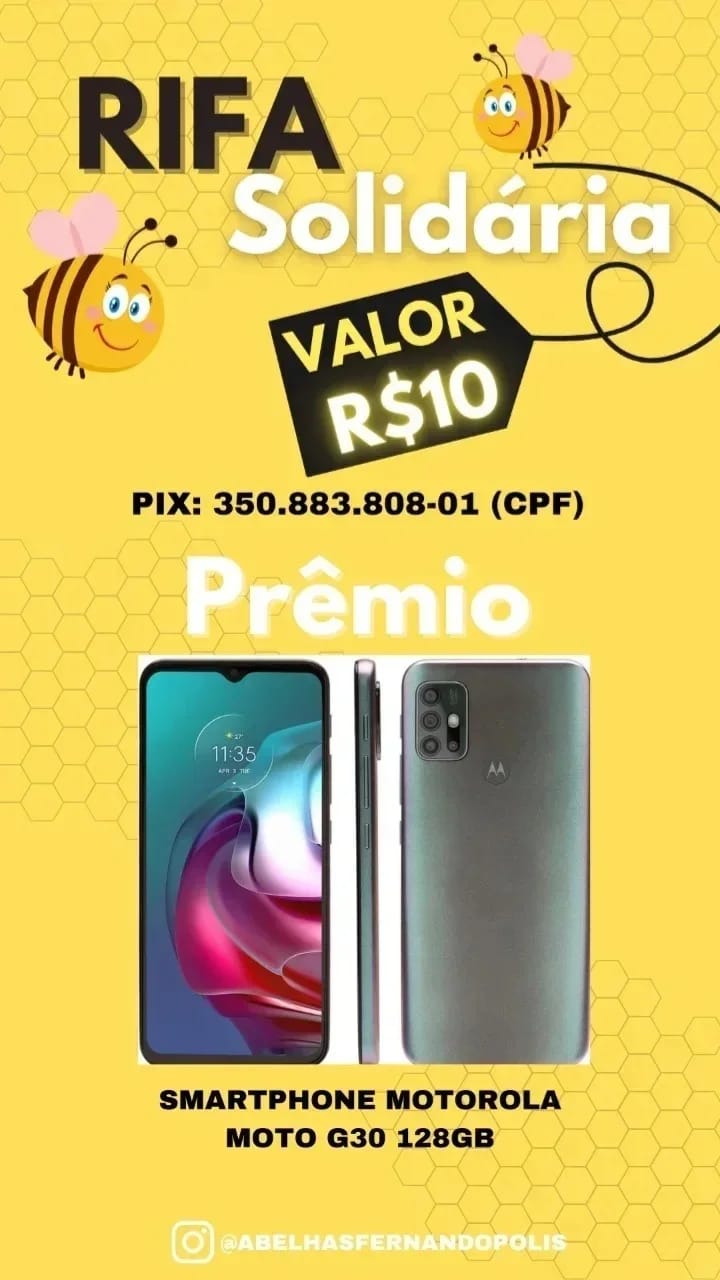 O grupo Abelhas realiza, no momento, uma rifa solidária, no valor de R$ 10, objetivando arrecadar recursos para manter projeto que distribui 100 marmitas, aos sábados, às famílias em vulnerabilidade social, em Fernandópolis.