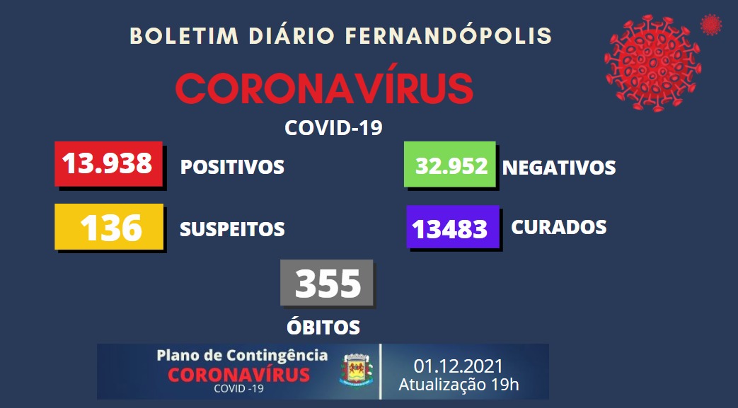 O Boletim Epidemiológico desta quarta-feira, 01, registra apenas mais 1 casos positivo para Covid-19 em Fernandópolis. O município chega a 13.938 infectados pela doença.