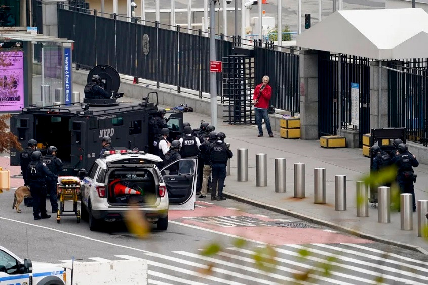 “A sede da ONU está fechada, há atividade policial", declarou Stéphane Dujarric, porta-voz das Nações Unidas, à AFP. Imagens compartilhadas nas redes sociais mostram policiais armados cercando o suspeito em uma calçada, se protegendo atrás de uma van, enquanto ele segura o que parece ser uma arma, não identificada.