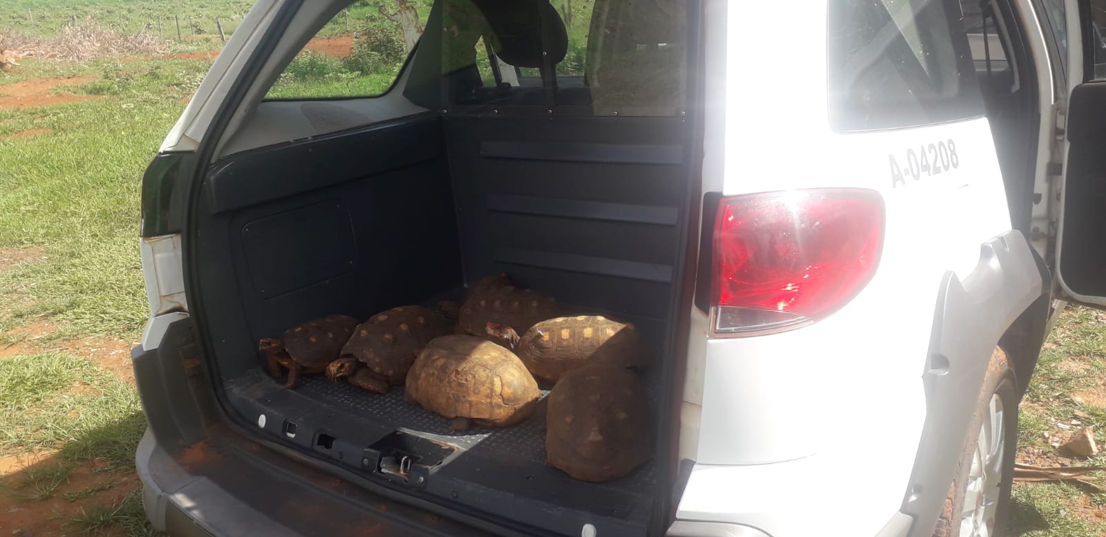 Ainda no mesmo local foram localizados oito Jabotis-pirangas em cativeiro, em um quintal cercado, infringindo o artigo 25, § 3º da Res. SIMA nº 005/2021 “Por ter em cativeiro espécimes da fauna silvestre sem autorização do Órgão Ambiental Competente”. Foi realizada a devida apreensão de todos os Jabotis e após avaliação de um veterinário habilitado, estes foram aptos para soltura nas proximidades do córrego do Barreiro no município de Votuporanga.