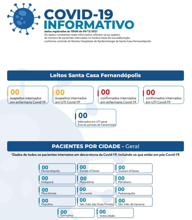 Pela primeira vez desde março de 2020, quando se iniciou a divulgação dos boletins epidemiológicos, a Santa Casa de Fernandópolis não tem nenhum paciente internado na enfermaria ou na UTI para Covid-19, e nem com suspeita da doença.