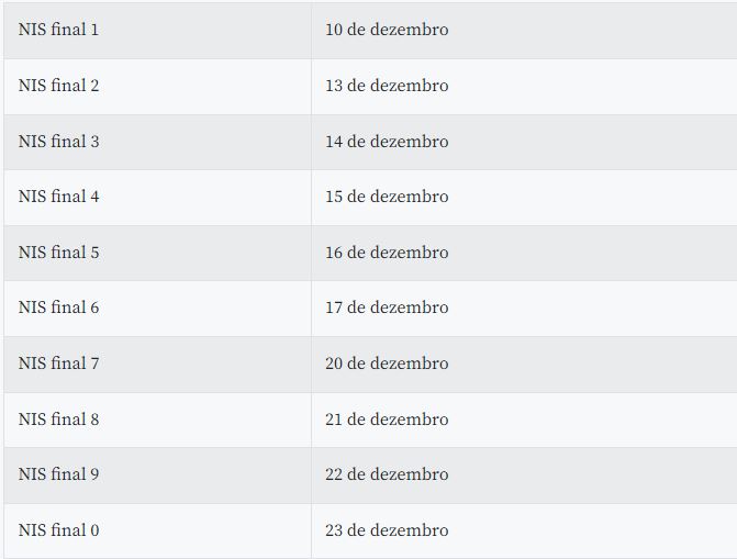 As datas de pagamento seguem o modelo do antigo Bolsa Família, que pagava os beneficiários nos dez últimos dias úteis do mês. Em dezembro, em função do feriado de Natal, os pagamentos vão até 23, com a antecipação do calendário regular em uma semana.