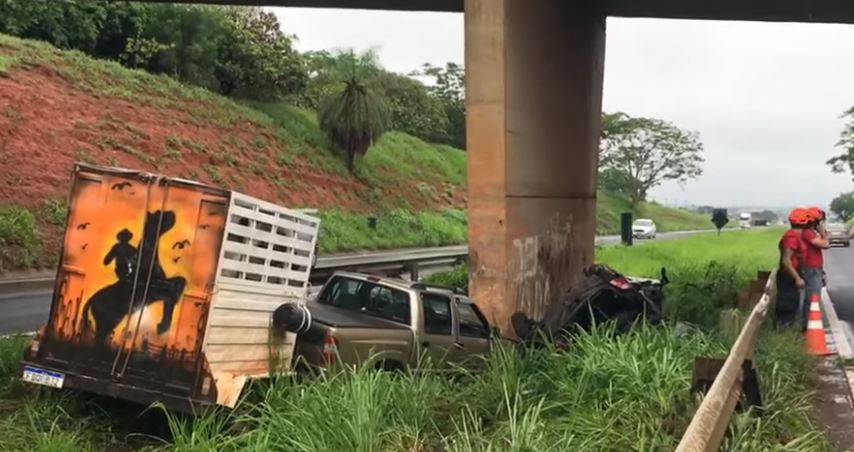 O acidente aconteceu após o motorista perder o controle do veículo. Uma caminhonete que carregava um reboque com um equino que vinha atrás também acabou se envolvendo no acidente e acertando o mesmo pilar.