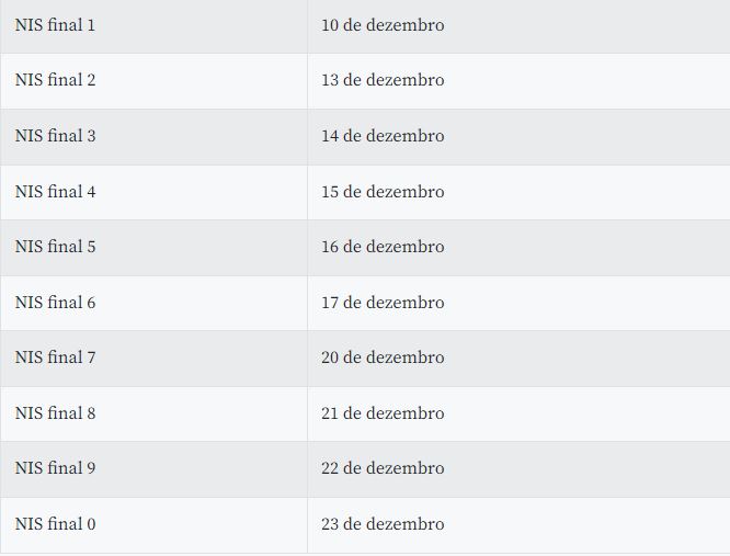 As datas de pagamento seguem o modelo do antigo Bolsa Família, que pagava os beneficiários nos dez últimos dias úteis do mês. Em dezembro, em função do feriado de Natal, os pagamentos vão até 23, com a antecipação em uma semana em relação ao calendário regular.