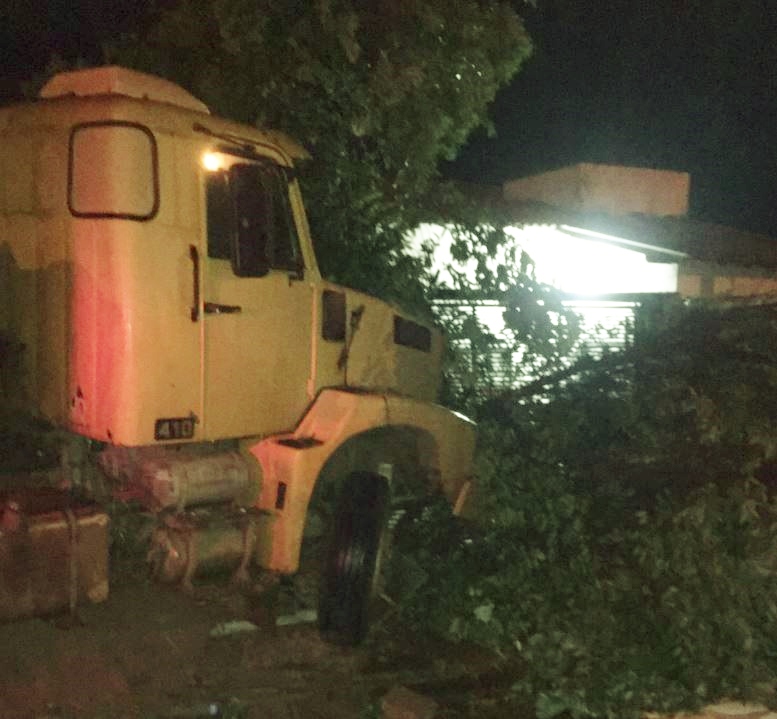 Caminhão acerta muro de casa e derruba árvore após perder os freios em Fernandópolis