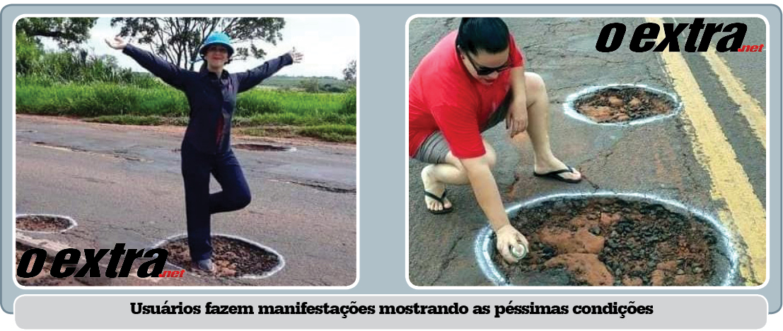Manifestantes expõem a degradação de uma das principais rodovias paulista, que interliga 3 estados. Montagem: Jornal O Extra.net/Facebook