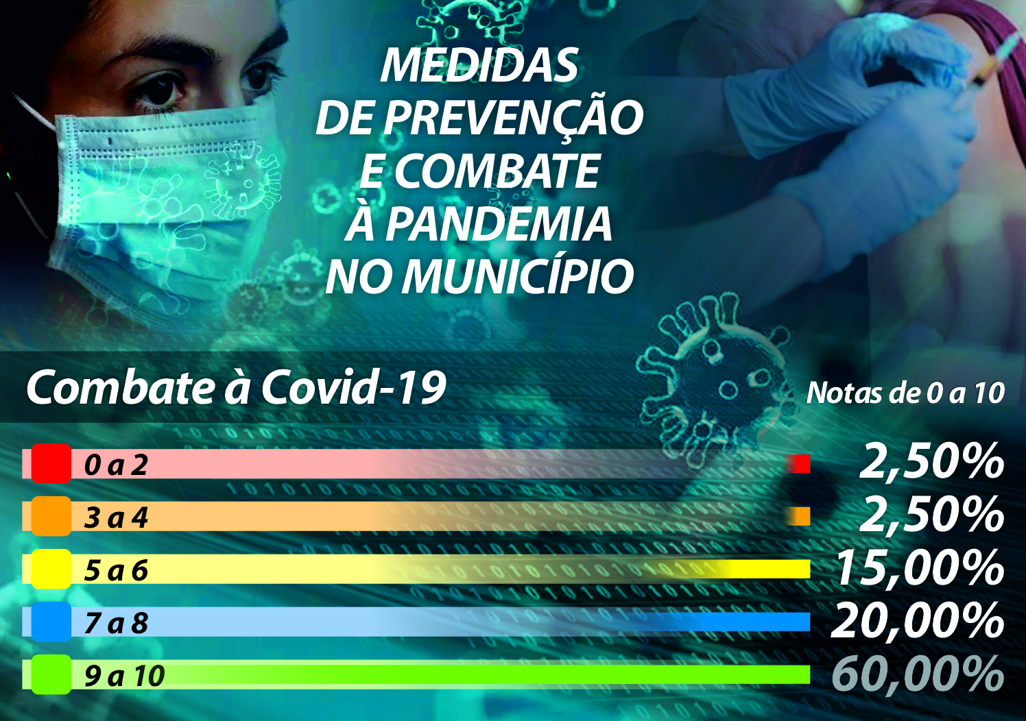 Outro tópico objeto da pesquisa foi a avaliação dos eleitores miraestrelenses foi a segmentação do governo municipal, incluindo um quesito sobre a atuação no combate à pandemia da Covid-19. Nesse item a avaliação de nota máxima (9 e 10) foi de 60%, enquanto que 5% reprovaram a atuação com avaliações que varia de 0 a 4. O setor que recebeu a maior quantia de avaliação máxima foi o de ‘Transporte Escolar’, com 70%, enquanto que o pior quantificado foi o de ‘Obras Públicas’ com 20% de notas 9 ou 10. As áreas de Educação, Saúde e Assistência Social, obtiveram 57,50%, 57,50% e 52,50% de avaliações máximas, respectivamente.